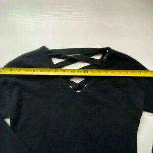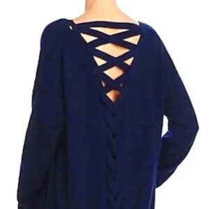 Pre-owned 100% Cashmere Sweater V-Neck Pullover with a beautiful lace-up decor on the back. Smoke free home.