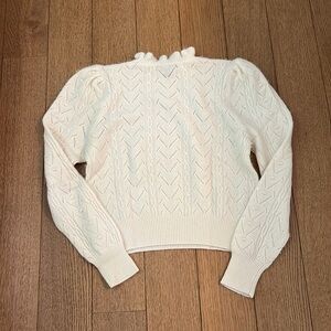 AQUA Cashmere Ruffled Turtleneck Sweater Ivory 100% Cashmere Large