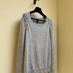 AQUA Cashmere Scoop Neck Sweater with Mesh Sleeves