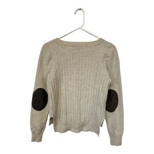 AQUA Cashmere | Sleeve Elbow Patch Cashmere Sweater Wheat Ivory L