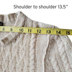 AQUA Cashmere Sweater Open Weave Cream Color Cable Knit Lightweight Size XS