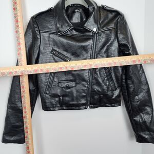AQUA Croc Embossed Faux Leather Biker Moto Jacket Size Small