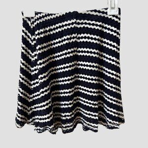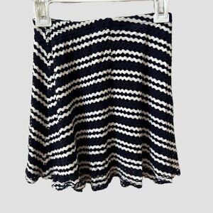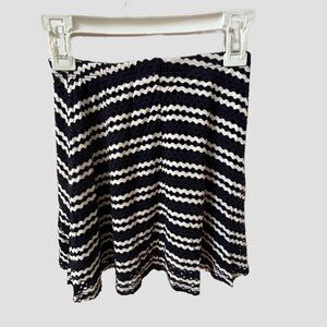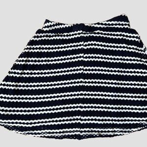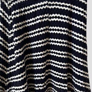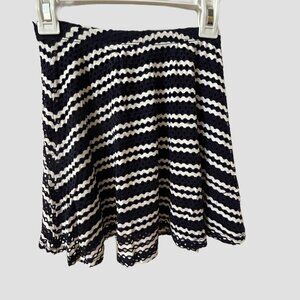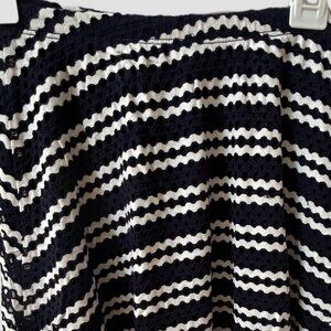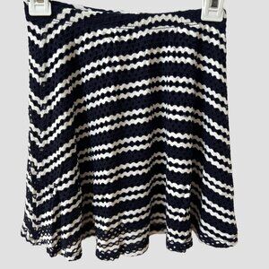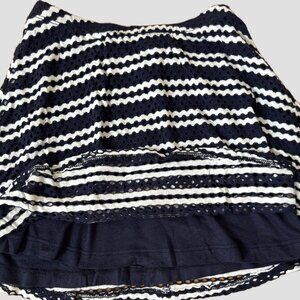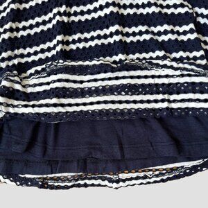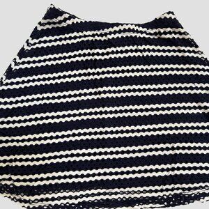 Aqua Dark Navy & White Striped Flared Skirt, Crochet Outer Fabric with Solid Navy Lining, Elastic Waistband, Girls Size M (9/10), Excellent Condition.