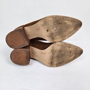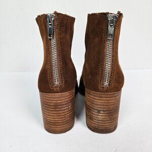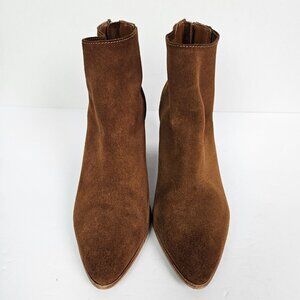 AQUA Dante Cognac Brown Suede Stacked Heel Ankle Boot 7.5