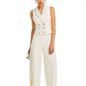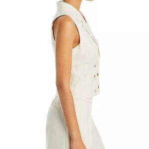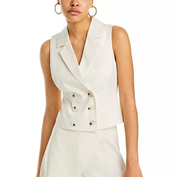 Chic, tailored vest in a creamy ivory—perfect for suiting sets or dressed-up denim. This AQUA double-breasted waistcoat features a V-neck, sleek sleeveless silhouette, marble-effect buttons, and a fully lined interior for a smooth fit. Non-stretch woven fabric holds its shape. NWT.
