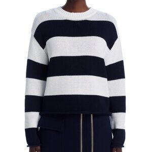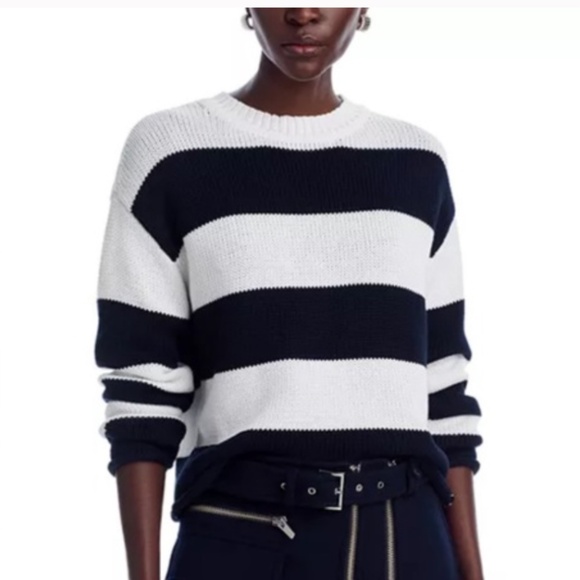 AQUA Drop Shoulder Cotton Striped Sweater – White/Black, Small