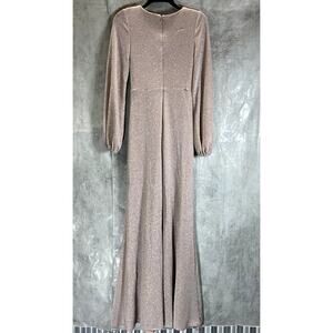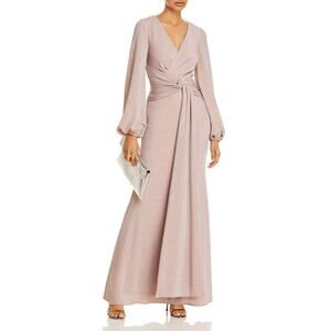 AQUA FORMAL Women's Blush Twist-Front Metallic V-Neck Long-Sleeve Gown SZ 2
