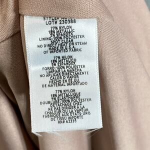 77% nylon/18% metallic/5% spandex; lining: 100% polyester