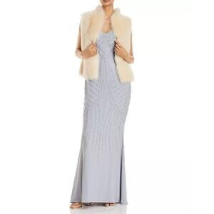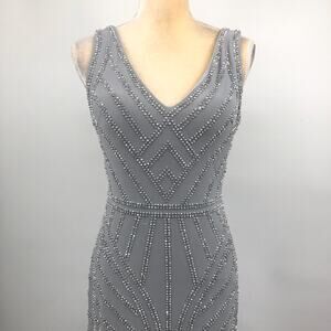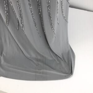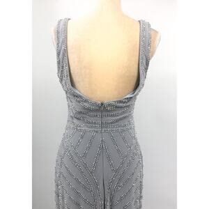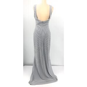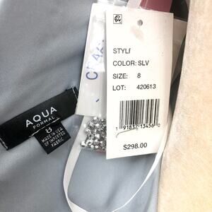 AQUA FORMAL Women's Embellished Column Gown Size 8 Silver Sleeveless NWT FLAW