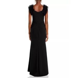 AQUA FORMAL Women's Long Scuba Crepe Dress Size 10 Black Ruffle Shoulder NWT