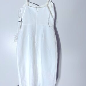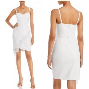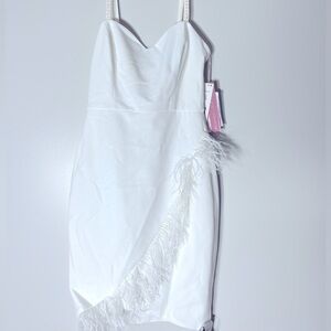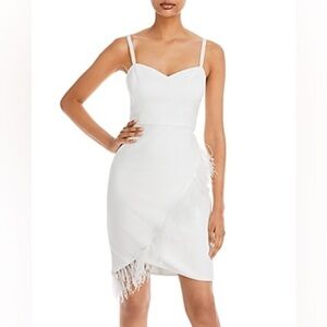 AQUA Feather Trim Dress SWEETHEART NECK Feather, New White gardenia size 0