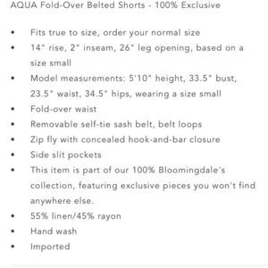 “AQUA” Fold Over Paper Bag Belted Shorts - NWT