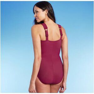 AQUA GREEN Women's Asymmetrical Shoulder One Piece Swimsuit Burgundy Small 4/6