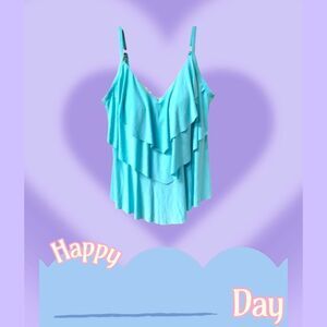 Women's Plus Size 18" 36" Bust & 22" long. Teal in Color Adjustable Straps ,Tired front, Breast pads, Non removable,Liner inside,Very Stretchy & Comfortable. New with Tags Never Worn. Material is 95% Polyester 5% Spandex.