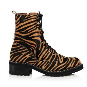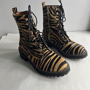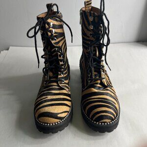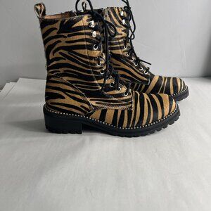 AQUA Jax Studded Tigger Print Calf Hair Lace Up Combat Boots Size 8