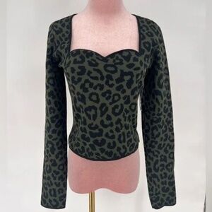 AQUA Leopard animal print Jacquard Long Sleeve Top with sweetheart neckline. New with tags. Never used.