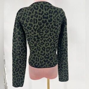 AQUA Leopard animal print Jacquard Long Sleeve Top Black and Green