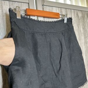 AQUA Linen Shorts Flat Front Lace Hem Side Zip Pleats Pockets Size Medium