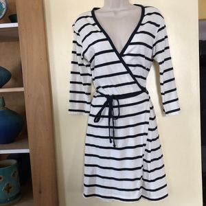 AQUA MARITIME 100% cotton striped wrap 3/4sl dress