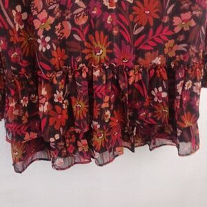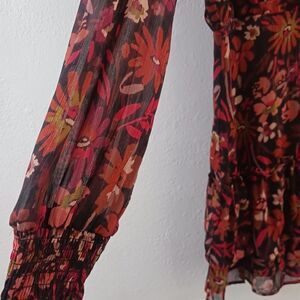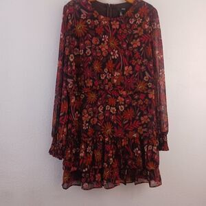 AQUA Metallic Floral Print long sleeve tier Mini Dress size XL. pre-owned. great condition