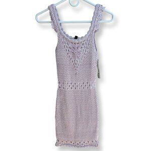 AQUA NWT Marled Crochet Boho Sleeveless Mini Dress in Lavender Purple Size XS