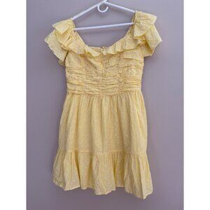AQUA NWT Yellow Eyelet Mini Off Shoulder Dress Size XL Cottagecore Prairie