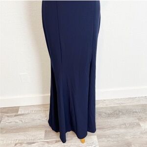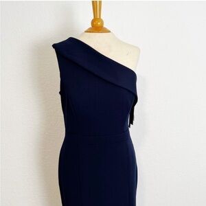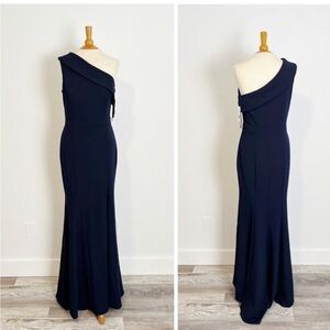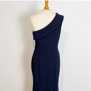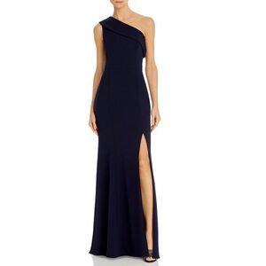 AQUA One-shoulder Scuba Crepe Navy Blue Gown