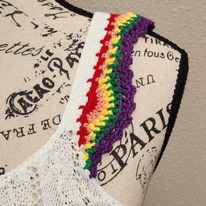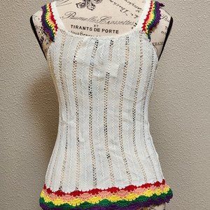 AQUA Open Stitch Crochet Rainbow Trim Tank Top - Small - NWT