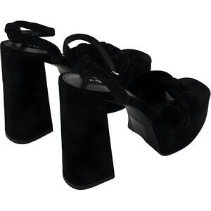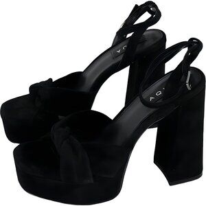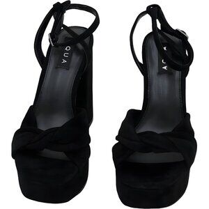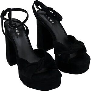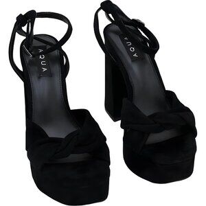 AQUA Pasha Block Heel Platform Sandals Black Suede Women US 7.5M