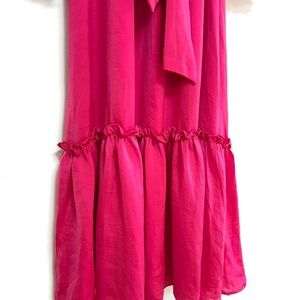 Romantic and effortlessly elegant, this AQUA maxi dress features soft ruffled detailing and a flowing tiered skirt for a timeless feminine look. Designed in a beautiful blush pink hue, it offers a comfortable pullover style with a self-tie belt to define the waist.