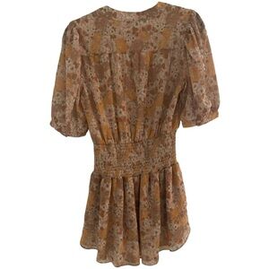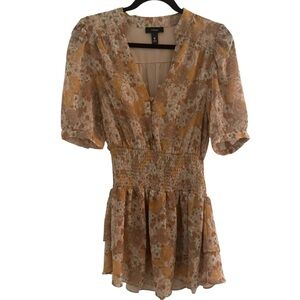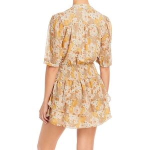 AQUA RETRO FLORAL PRINT SMOCKED DRESS, Yellow/Gold, Size Small