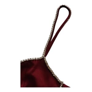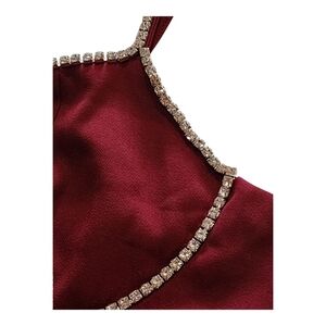 The AQUA Women's Red Crystal Trim Mini Dress is a stunning blend of sophistication and playfulness, designed to make a statement. The dress is made with a blend of 95% polyester and 5% spandex for the exterior, ensuring a slightly stretchy and comfortable fit. The lining is composed of 98% polyester and 2% spandex, providing structure and comfort. Featuring a flattering sweetheart neckline, crystal-embellished straps, and a seamed waist, this dress exudes elegance with a touch of sparkle. Its adjustable shoulder straps ensure a perfect fit, while the slightly stretchy polyester/spandex blend and flared skirt provide comfort and movement. Designed to hit above the knee, the dress offers a chic silhouette that is both modern and timeless. Part of Bloomingdale's exclusive collection, you won't find it anywhere else. This piece is unique and perfect for cocktail parties or formal events. With its bold red hue and dazzling details, it’s a standout choice for any special occasion including homecoming!