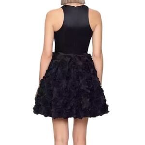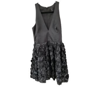 AQUA Rose Embellished Cocktail Mini Dress Sleeveless V Neck Black Size 8 NWT