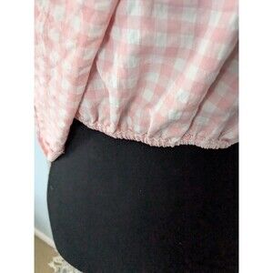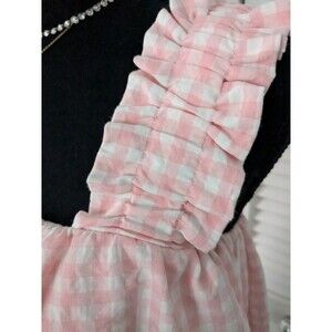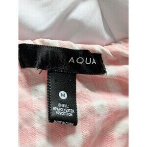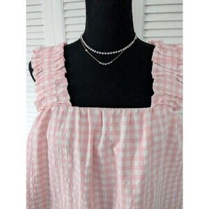 AQUA Ruched Sleeveless Top Women's M Pink White Check Ruffle Shoulder Whimsical