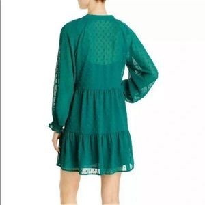 AQUA Ruffled Clip Dot Long Sleeve Tie Neck Dress Green NWT Small