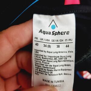 AQUA SPHERE LITA blue/black/gray color block keyhole back Swimsuit sizes 8