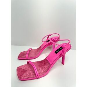 AQUA Sandals Womens Size 10 Square Toe Pink Raffia Detail Slip On Heel NEW