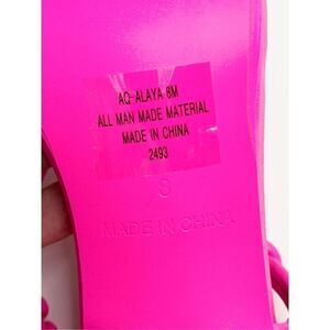 Step out in style with these stunning AQUA sandals. Perfect for any occasion, these sandals feature a hot pink solid pattern with accents of the AQUA logo. The ankle strap and slip-on closure ensure a secure and comfortable fit, while the breathable synthetic outsole keeps your feet cool and comfortable all day long.