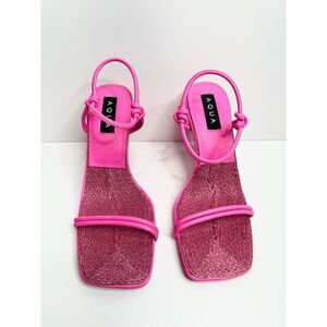 AQUA Sandals Womens Size 8 Square Toe Pink Raffia Detail Slip On Heel NEW