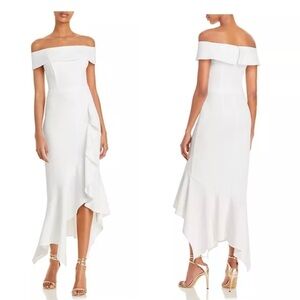AQUA Scuba Crepe Off-the-Shoulder Midi Dress