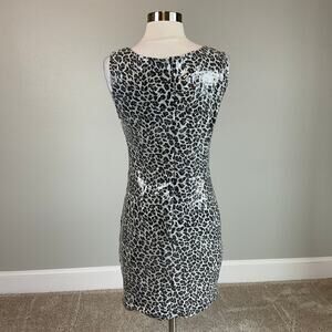 AQUA Sequin Sleeveless Mini Sheath Cocktail Dress Sparkly Black and White Size 6