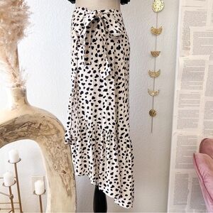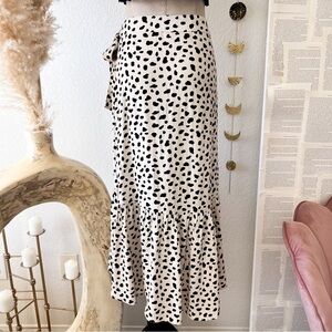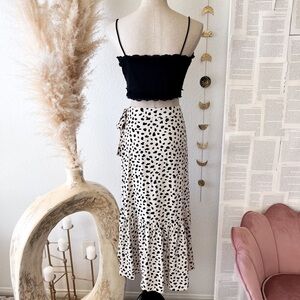 - AQUA Spotted Ruffled Wrap Midi Skirt