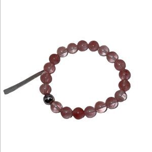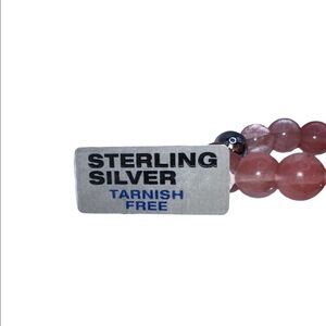 AQUA Sterling Silver & Cherry Quartz Bead Stretch Bracelet Bloomingdales NWT