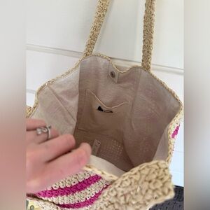AQUA Striped Crochet Beach Bag - Cream and Pink NWT