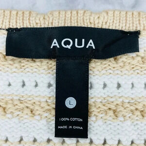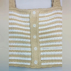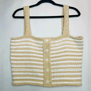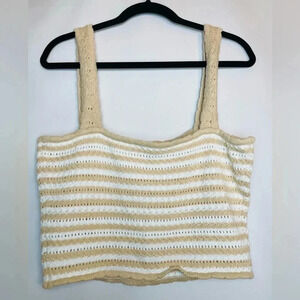 AQUA Striped Crochet Cropped Tank Top Tan/White Square Neck Sleeveless Size Larg