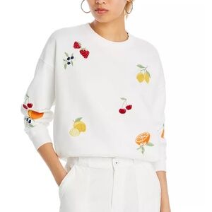 AQUA Teddy Fruit Embroidered Sweatshirt – White – XXS – NWT ($98)