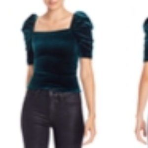 AQUA Velvet Square-Neck Puff Sleeve Top