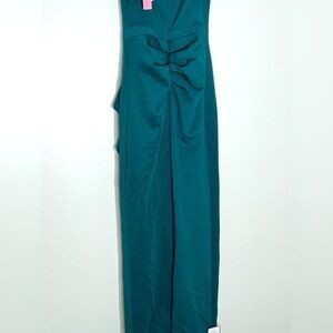 -AQUA WOMEN'S OFF THE SHOULDER CASCADE GOWN HUNTER GREEN SIZE 4
