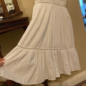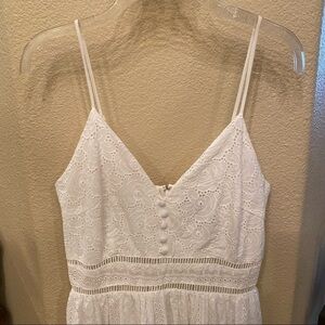 Pre-owned in great condition with no rips or stains. Cute white eyelet spaghetti strap dress. Zipper in the back. Great summer dress. Comes from smoke and pet free home.
