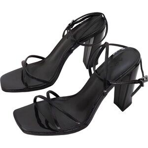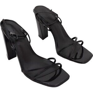 AQUA Winie Patent Strappy Sandals Black Square Toe Block Heel 8M